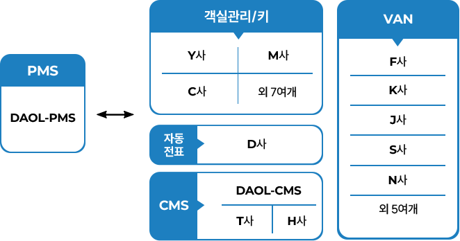 PMS GMS(Golf Management System) TPMS(Theme Park Management System) WPMS(Water Park Management System) LMS(Leisure Management System) TMS(예약,테이블,주문,분석관리)